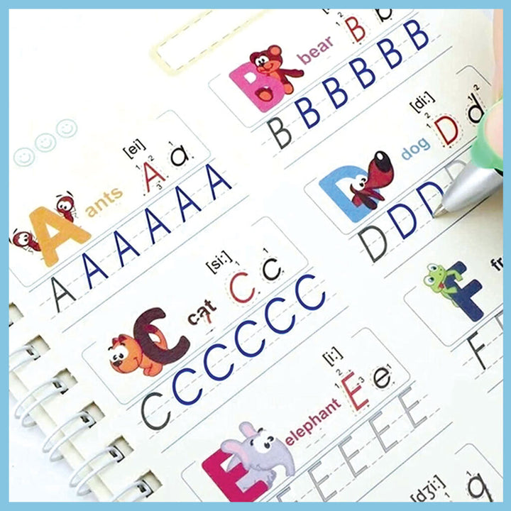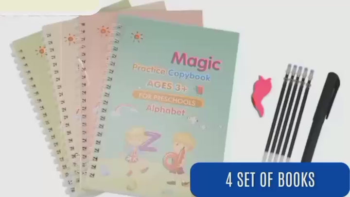 Magic Practice Copybook Set (4 Books + 10 Refills + 1 Pen) – Reusable Handwriting & Drawing Learning Kit for Kids